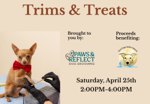 Join us at Legion Dog & Cat Supply on April 25th from 2 PM to 4 PM for our Trims & Treats Event.